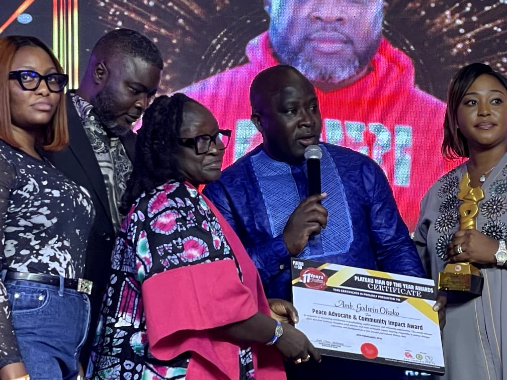 Ambassador Godwin Okoko, Executive Director of Bege Foundation, was honoured at the 11th Plateau Man of the Year Awards (PMYA 2025) for his work as a Peace Advocate and his contributions to community development.