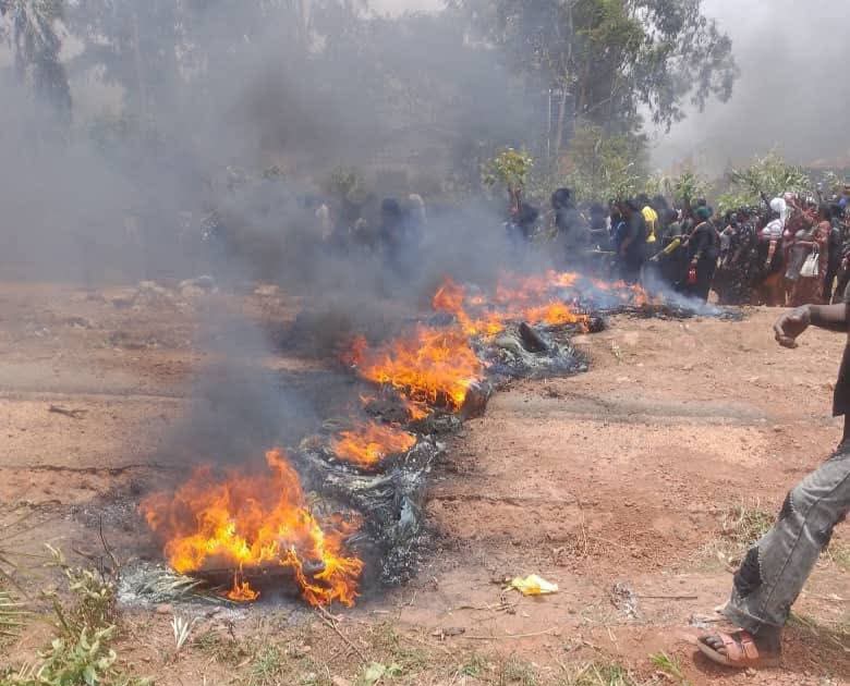 The mob reportedly blocked major access roads during the protest, disrupting movement in and out of the community for several hours before the situation began to ease.