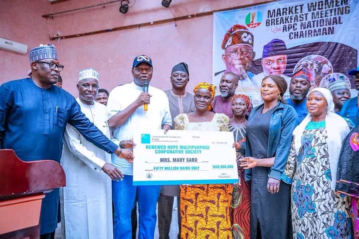 Mama Mary, who received the ₦50 million cheque on behalf of the market women, expressed deep gratitude to the APC Chairman for the gesture.