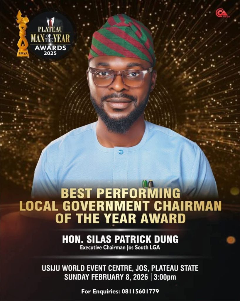 Hon. Silas Patrick Dung, the Executive Chairman of Jos South Local Government Area, has been named Best Performing Local Government Chairman of the Year at the Plateau Man of the Year Awards (PMYA) 2025 for his people-focused leadership.