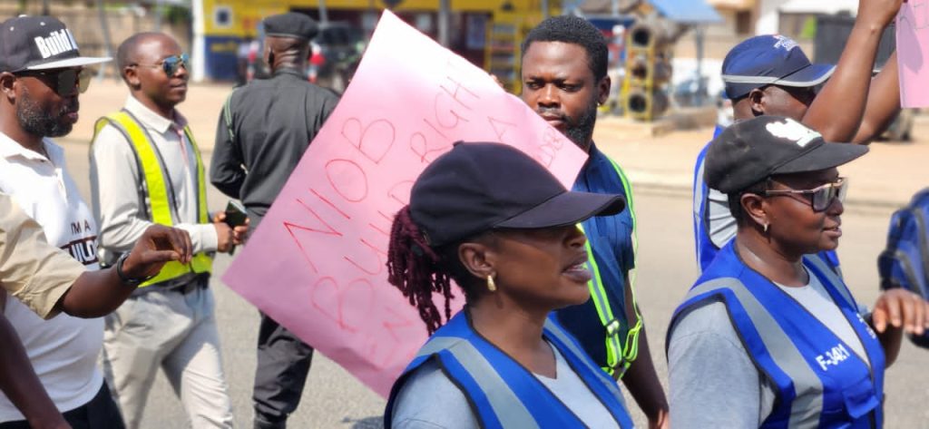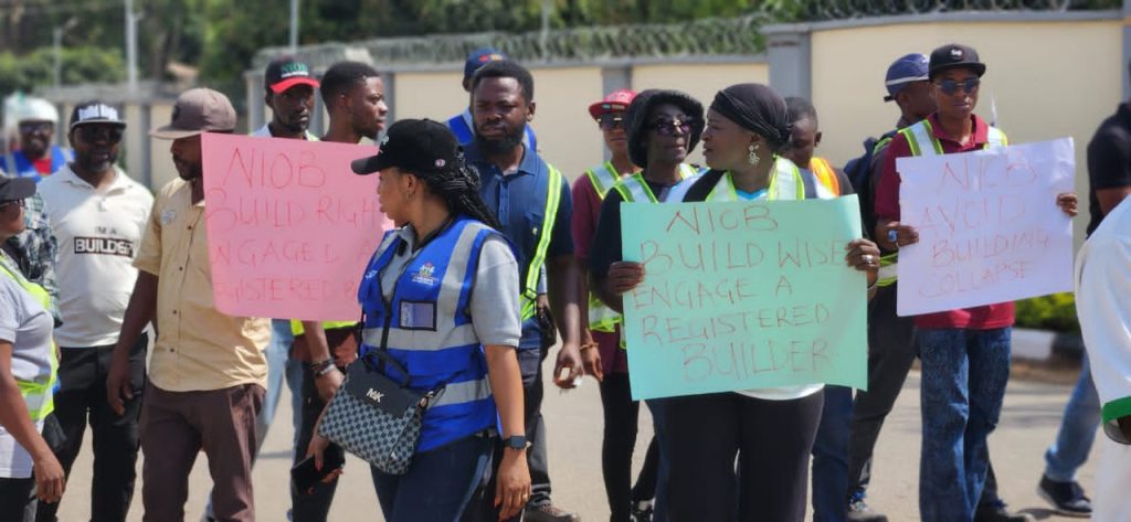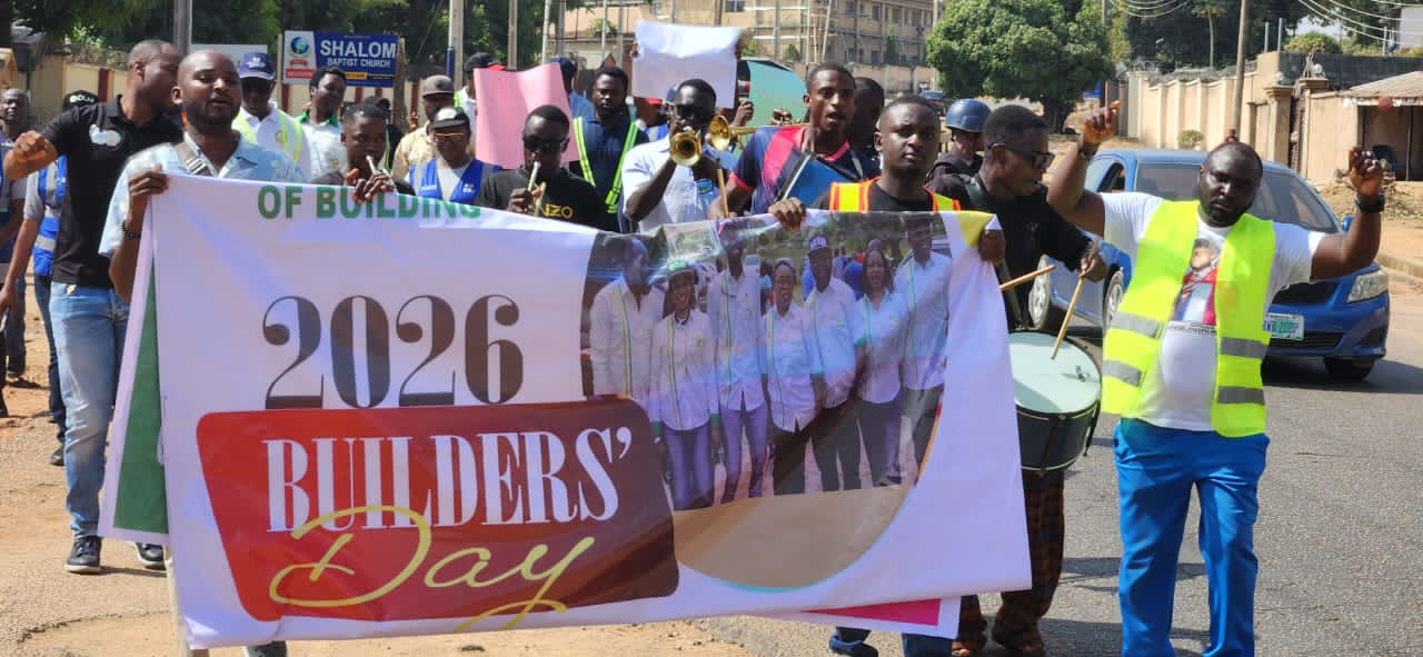 The awareness walk, which drew participation from professional builders and construction stakeholders, moved through major streets in the city, with participants carrying placards bearing messages that emphasised the need for strict adherence to building standards and the engagement of qualified professionals in construction projects.
