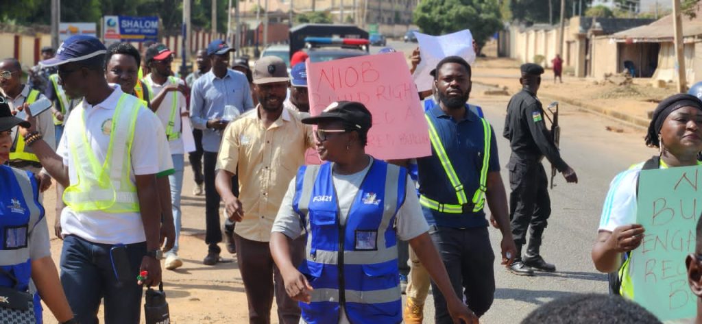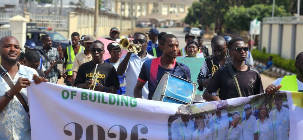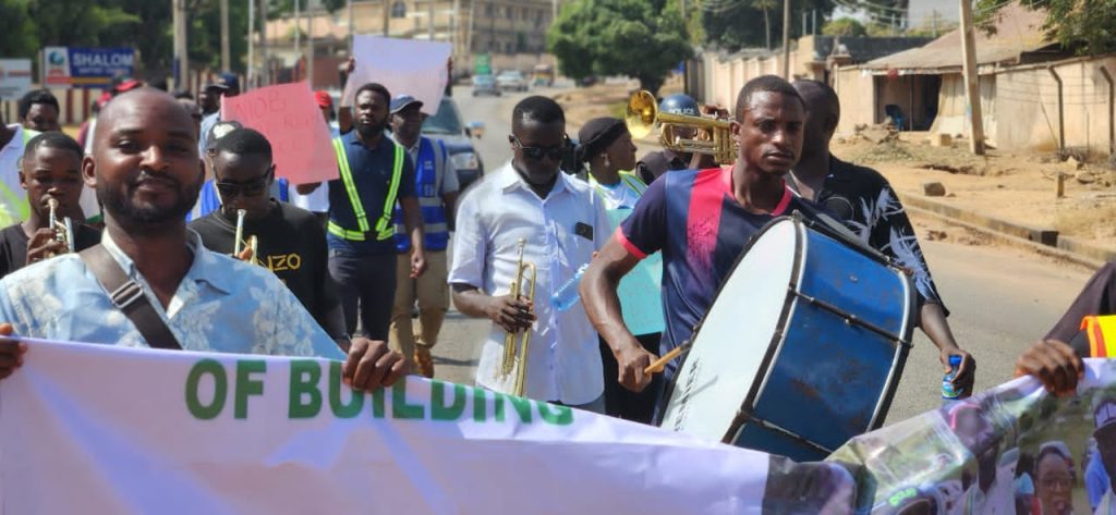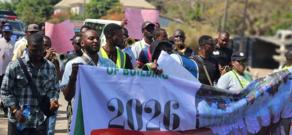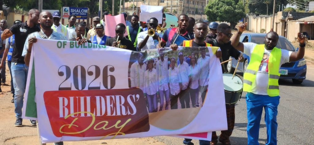 Members of the Nigerian Institute of Building (NIOB), Plateau State Chapter, took to the streets of Jos in a road walk aimed at creating public awareness on the importance of safe building practices as part of activities marking the 2026 Builders’ Week.