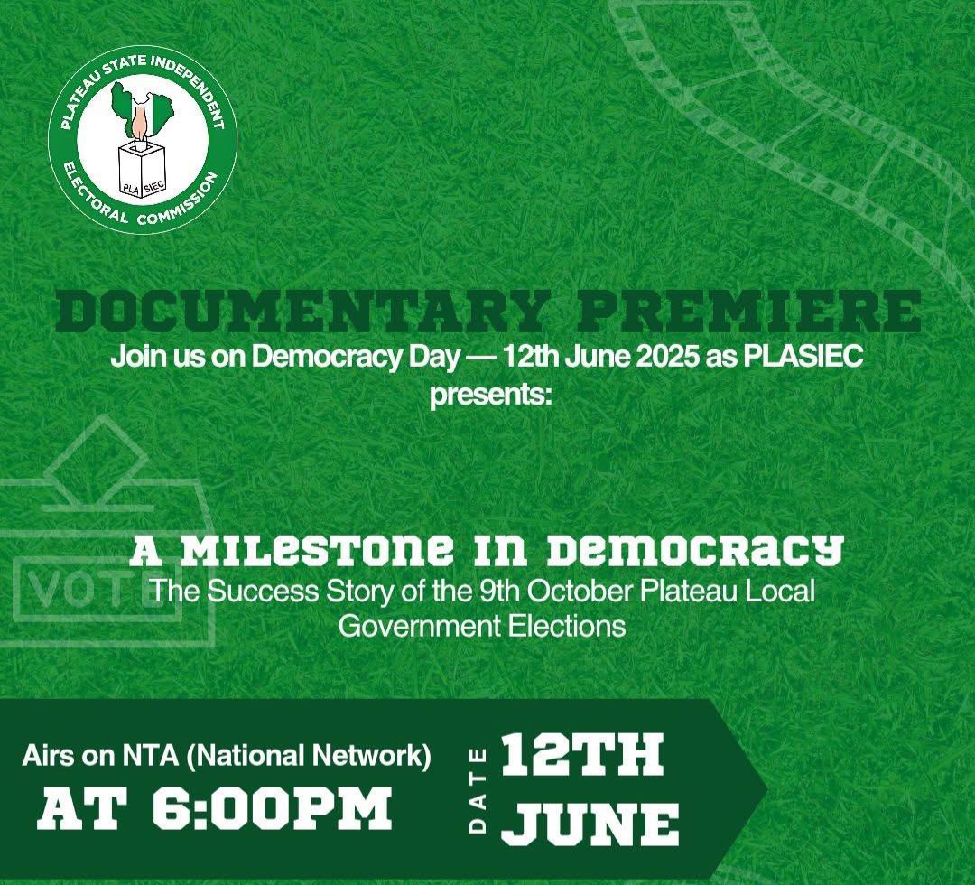 Plateau State, Nigeria – June 12, 2025 — The Plateau State Independent Electoral Commission (PLASIEC) is set to premiere its highly anticipated documentary titled “A Milestone in Democracy: The Success Story of the Plateau 9th October Local Government Elections” on the national network of the Nigeria Television Authority (NTA).