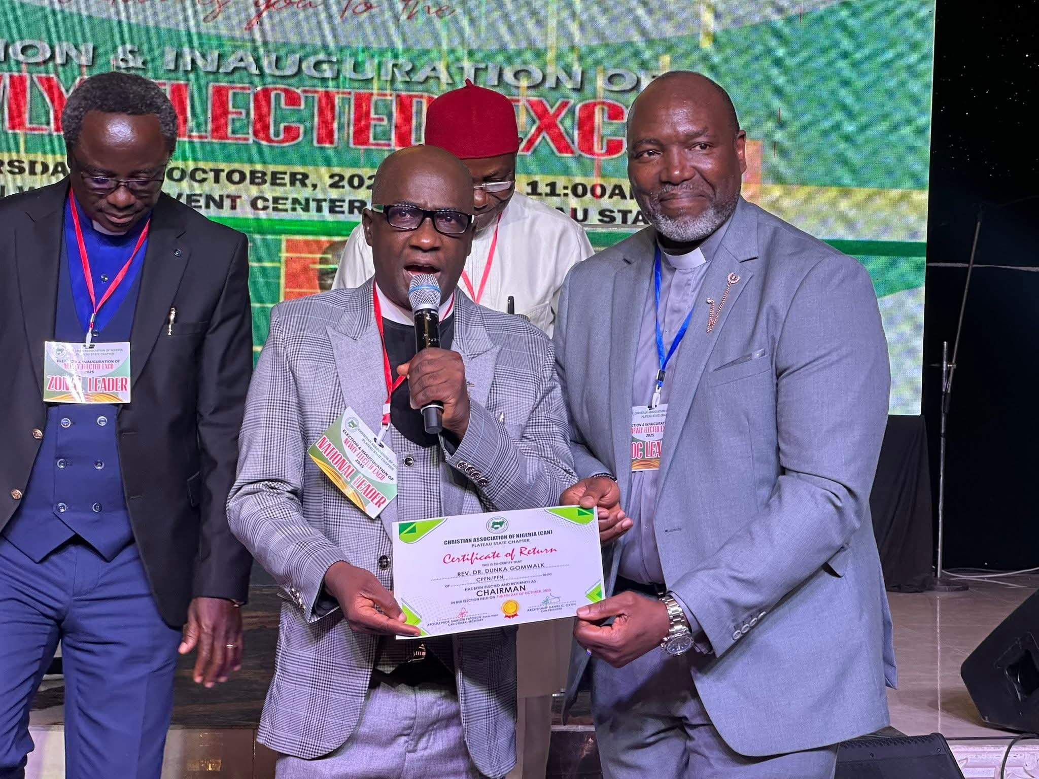 The Christian Association of Nigeria (CAN), Plateau State Chapter, has elected Rev. Dr. Dunka Gomwalk as its new Chairman.