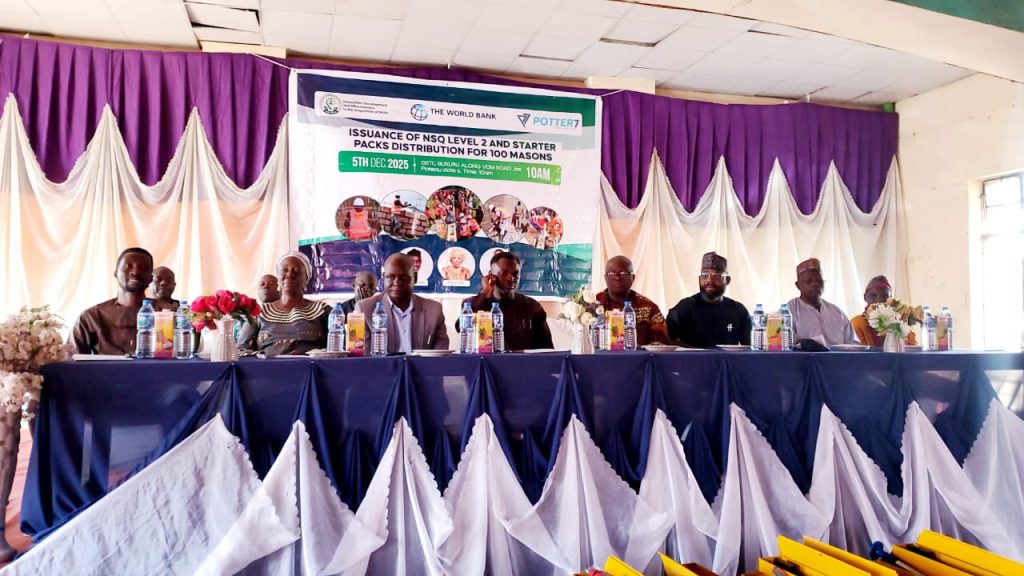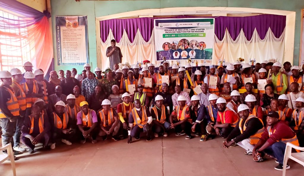 Potter 7 Limited, in partnership with the Innovation Development and Effectiveness in the Acquisition of Skills (IDEAS) Project and with support from the World Bank, has successfully trained and graduated 100 masons in Plateau State. The beneficiaries also received starter packs after attaining the National Skills Qualification (NSQ) Level 2 certification for 6 months.