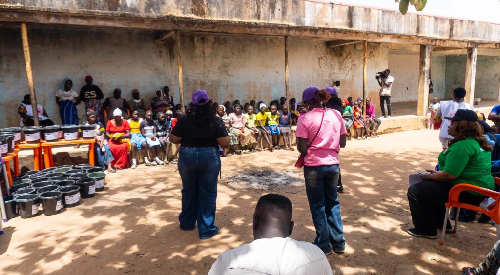 As part of the intervention, dignity kits containing reusable pads, soap, buckets, underwear, toothbrushes and toothpaste were distributed to about 50 women to support their menstrual and personal hygiene needs.