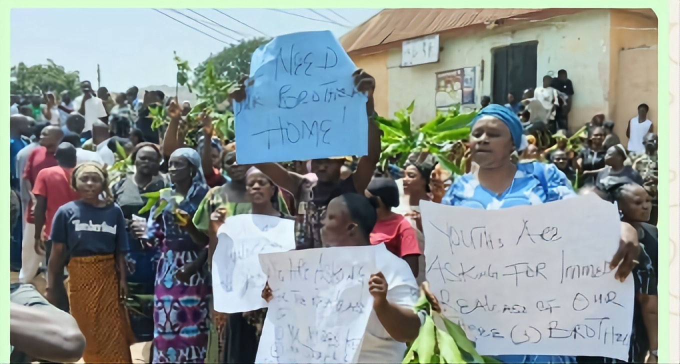 The protesters, who claimed the arrested youths were innocent, demanded their immediate release, chanting slogans ” no release of our children, no burial” and blocking the church entrance to prevent mourners from attending the funeral service.